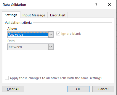 DATA VALIDATION: In Excel, you can decide the type of data that should be entered in a cell or the entire sheet. The process of doing that is what is known as data validation. Its purpose is to ensure an error free data, accuracy and consistence in form. You can also use it to create a drop-down list.