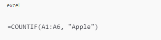 =COUNTIF(CELL_RANGE, “APPLE”)