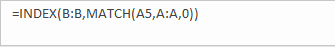 N.B: From the above formula, I returned the corresponding value of A5 in column B